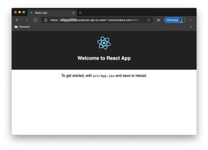 The interesting information is the first endpoint URL. This is your deployed website! Open the URL in a browser of your choice (including the /dev/ path of the URL):